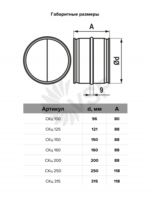 Соединители с защитой от обратной тяги СКц предназначены для предотвращения движения воздуха в обратном направлении при выключенной системе вентиляции. Клапан соединителя открывается под давлением, которое создается потоком воздуха, и закрывается под действием пружины. Корпус соединителя изготовлен из оцинкованной стали, пластины — из листового алюминия. Соединитель клапана оборудован специальным уплотнителем из микропористой резины с целью снижения шума устройства и обеспечения герметичности. СКц предназначен для соединения с круглыми воздуховодами вентиляционных систем. Крепится при помощи хомутов. При монтаже в систему вентиляции ось клапана должна быть расположена вертикально.