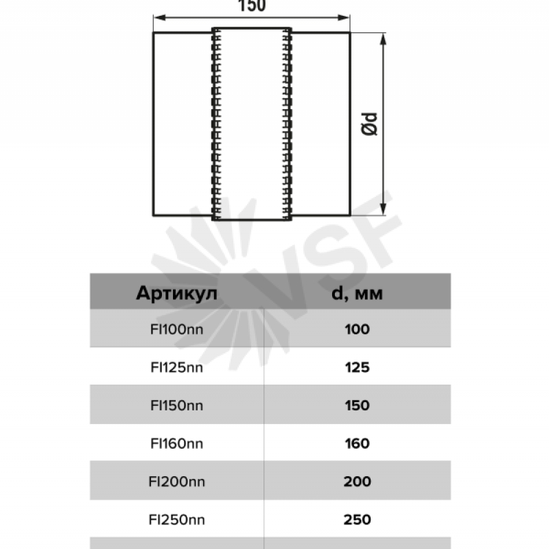 Вставка гибкая, серия FI, с ниппельным соединением, D100