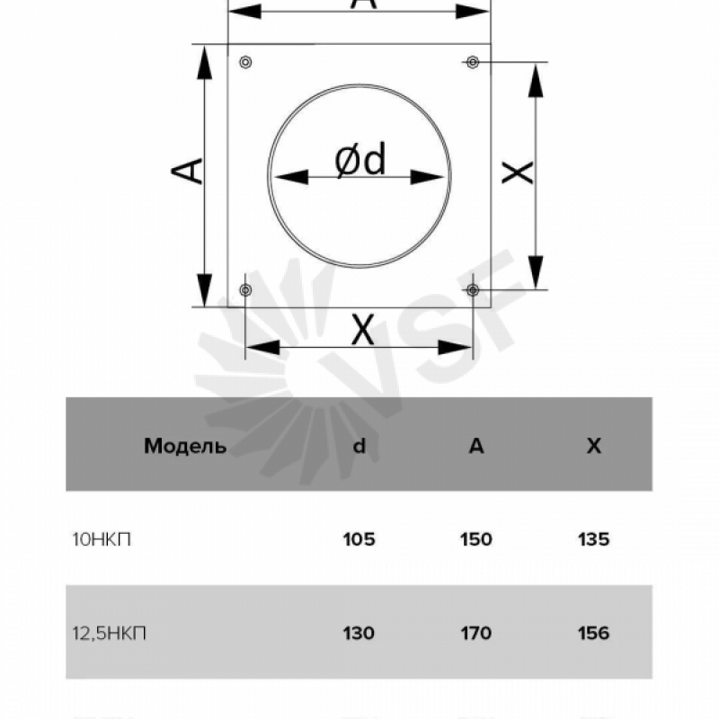 Главная / Фасонные части / Пластиковые / 12,5НКП, Накладка торцевая пластик 170х170, для воздуховода D125