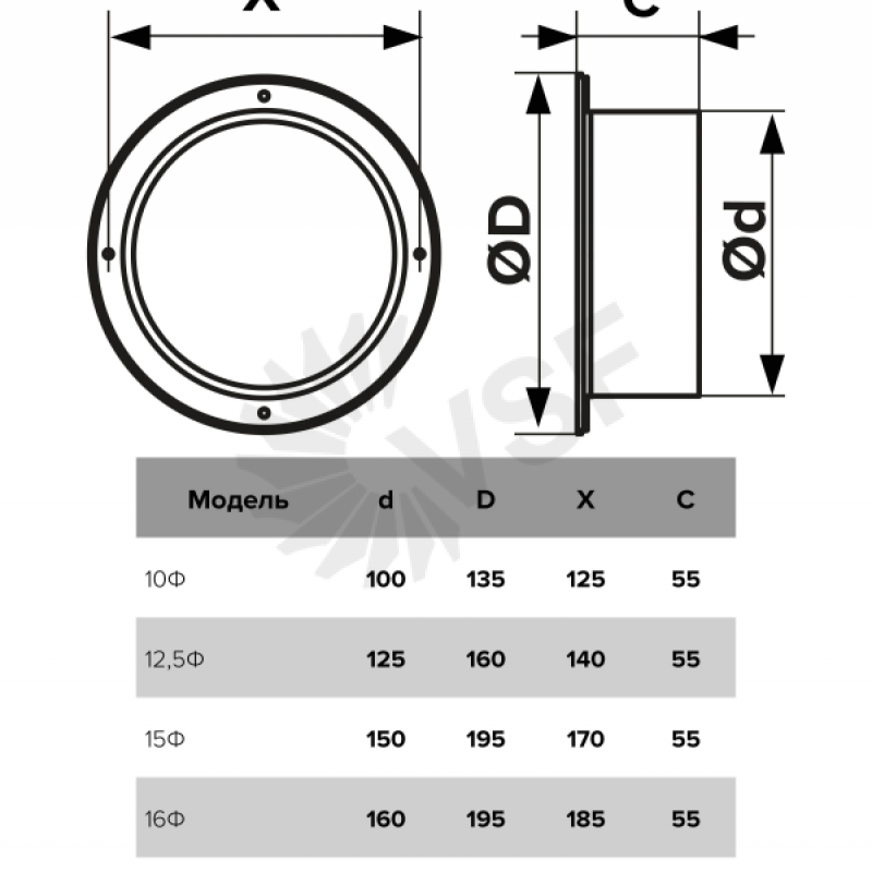 Фланцы Ф используются для присоединения воздухораспределителей без фланца к круглым воздуховодам соответствующего сечения. Крепление при помощи саморезов.
