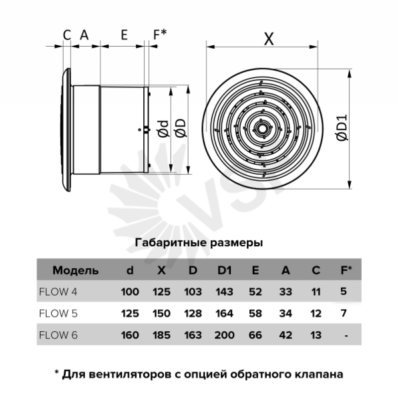 FLOW 4 С ВВ, Вентилятор осевой с обратн. клапаном, круглой решеткой, двигателем на ш/подшип D100