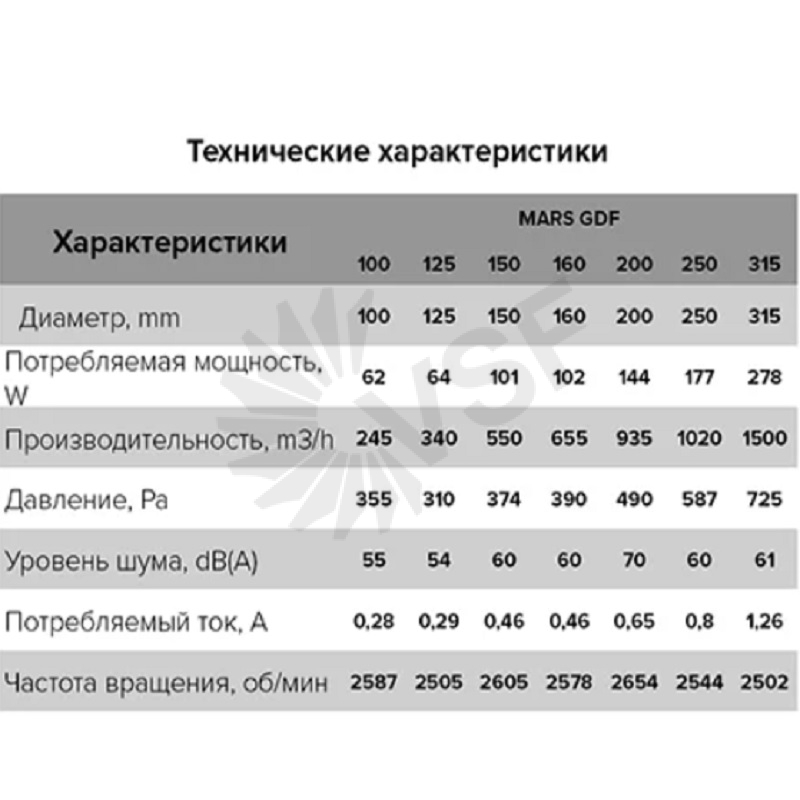 MARS GDF 125 Вентилятор центробежный канальный D 125