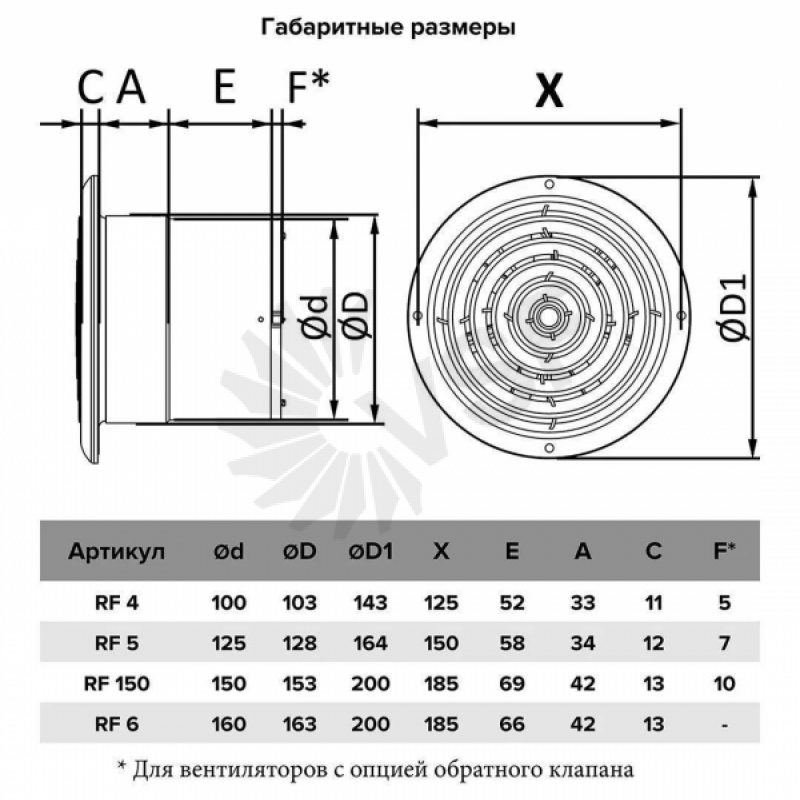 Вентилятор накладной RF обр.клапан D125 AURAMAX