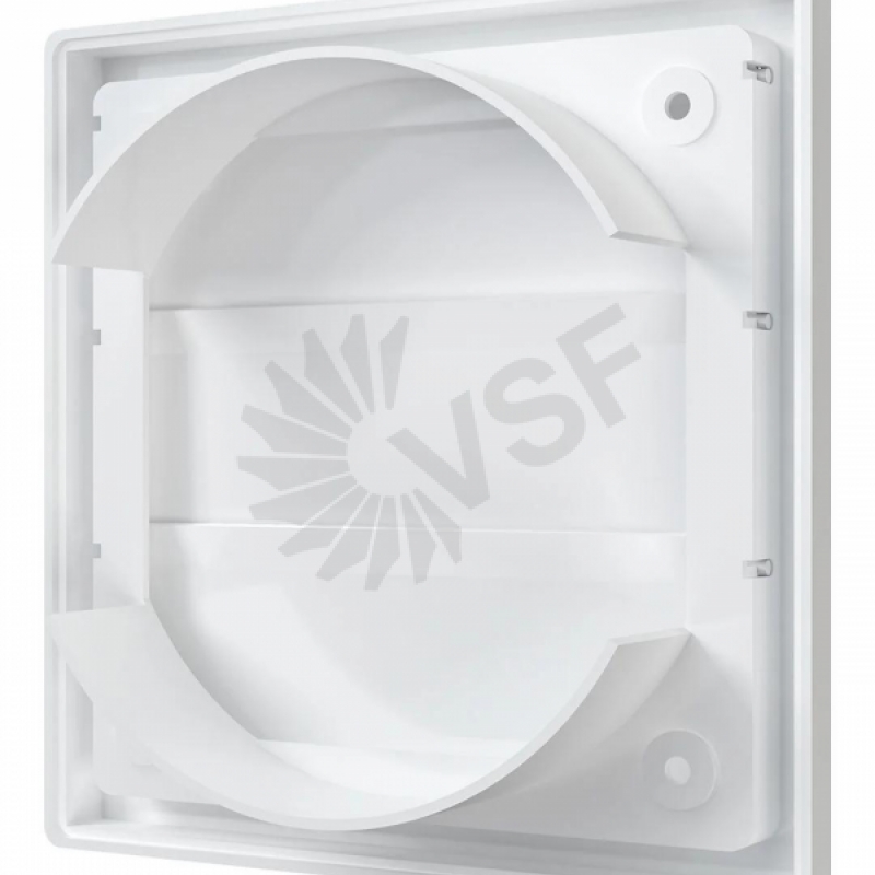Главная / Вентрешетки / Пластиковые / 1515К12,5Ф, Решетка приточно-вытяжная с гравитационными жалюзи 150х150 с фланцем D125,ASA, бел.