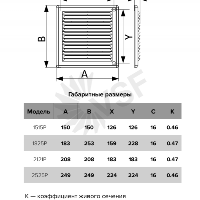 Вентиляционная решетка Р не крепится непосредственно к стене или к потолку, а вставляется в рамку, которая монтируется на поверхности. Это позволяет легко снимать изделие для обслуживания. Имеет антимоскитную сетку для защиты от насекомых. Выпускается в белом, бежевом и коричневом цвете.