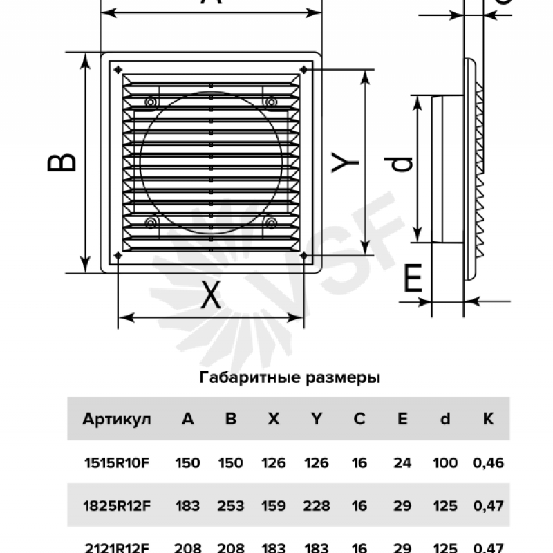 Решетка серии RF монтируется с круглым пластиковым воздуховодом при помощи фланца. Благодаря разъемной конструкции для обслуживания не требуется полный демонтаж, достаточно лишь отделить решетку от рамки. Крепление осуществляется с помощью шурупов. Имеет наклонные жалюзи, которые скрывают вентиляционное отверстие.