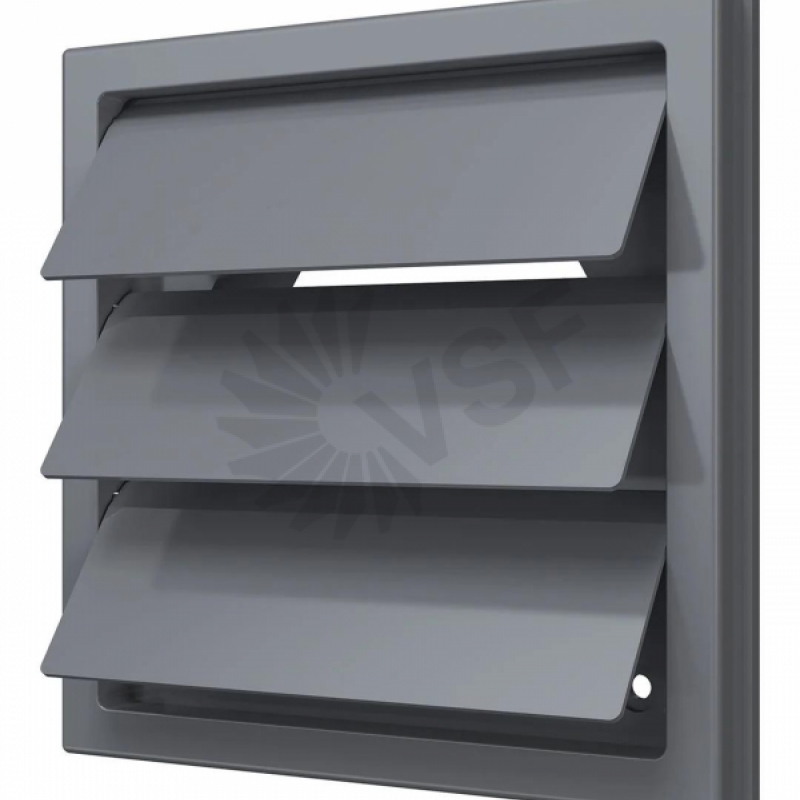 Главная / Вентрешетки / Пластиковые / 1919К15.16Ф сер, Решетка приточно-вытяжная с гравитац. жалюзи 190х190 с фланцем D150/160, ASA, сер