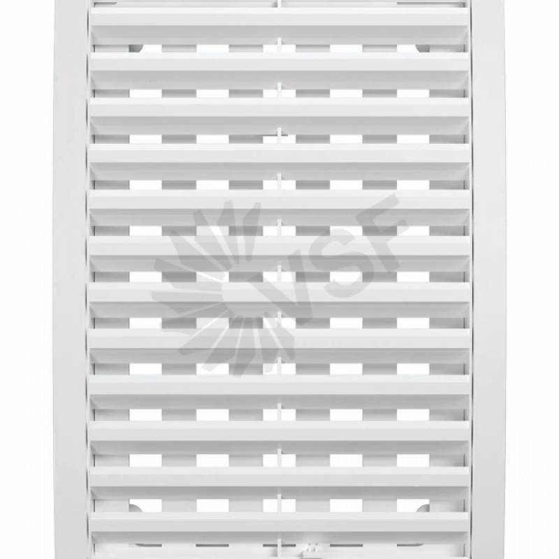 Разъемная решетка РРП оснащена подвижными частями для регулировки потока воздуха, нужное положение выбирается перемещением флажка. Наклонные жалюзи скрывают шахту вентиляции и придают ей эстетичный вид. Доступна в белом цвете и Ivory.