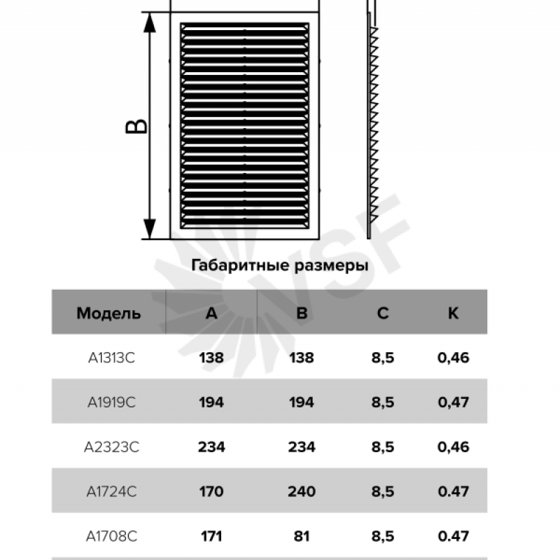 A1313C, Решетка вентиляционная 138х138
