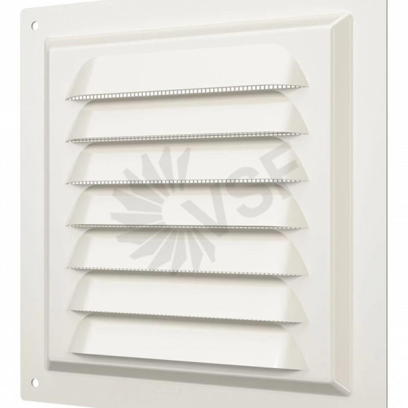 Решетка МЭ изготавливается из оцинкованной стали, которая покрывается полимерной эмалью. Имеет наклонные жалюзи. Оснащена антимоскитной сеткой, которая монтируется в специальном углублении, что упрощает процесс ее замены. Выпускается в белом, коричневом цвете и Ivory.