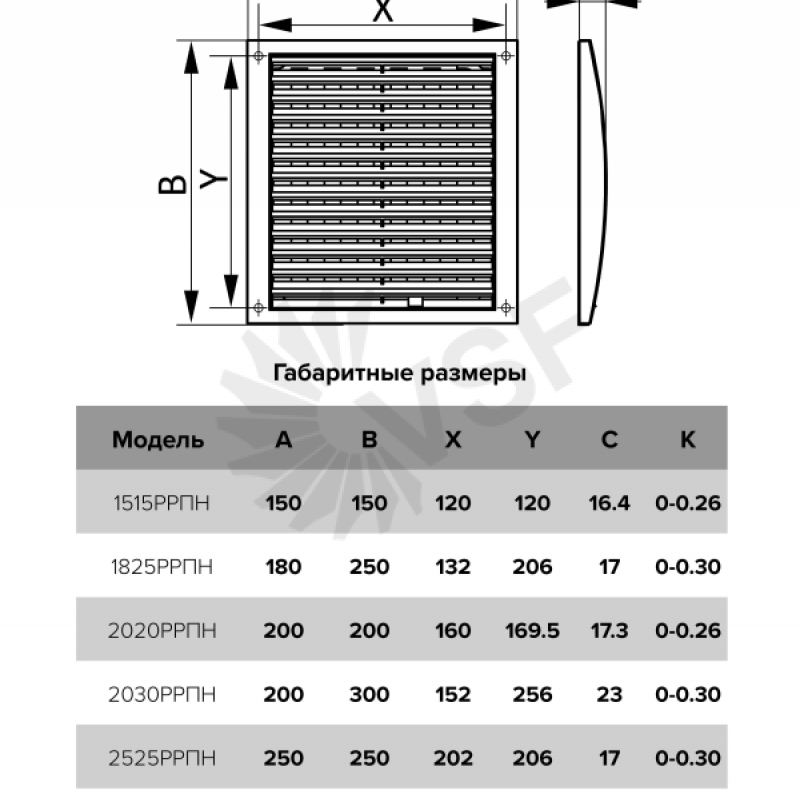 Главная / Вентрешетки / Пластиковые / 1515РРПН, Решетка наружная ASA вентиляционная регулируемая 150х150