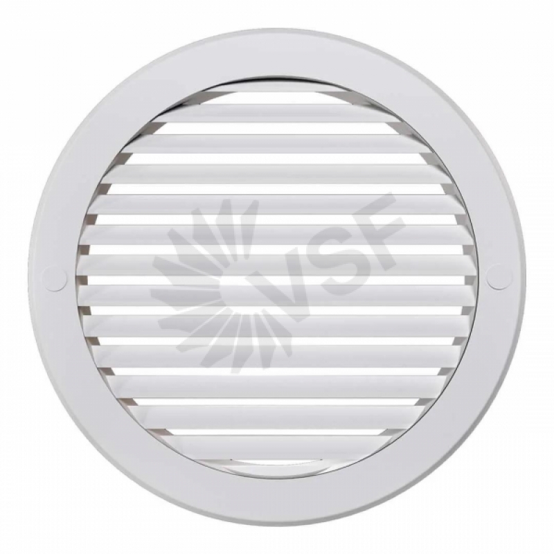 Решетка РК оснащена наклонными жалюзи, скрывающими от глаз вентиляционную шахту. Монтируется с круглыми пластиковыми воздуховодами ВП, соединяется при помощи фланца. В комплекте есть заглушки для монтажных отверстий.
