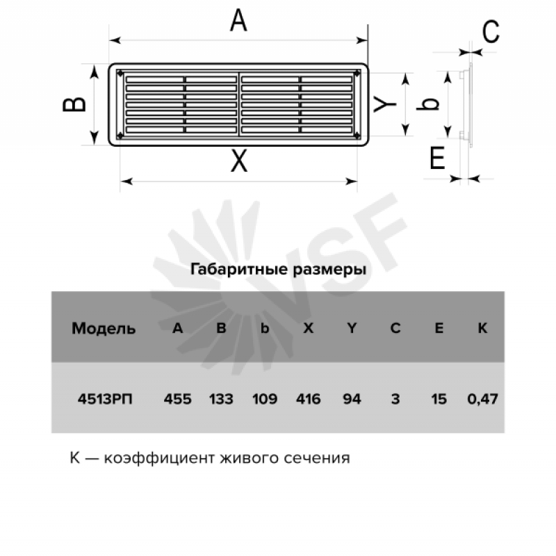 4513РП, Решетка вентиляционная переточная АБС 455х133, бел.