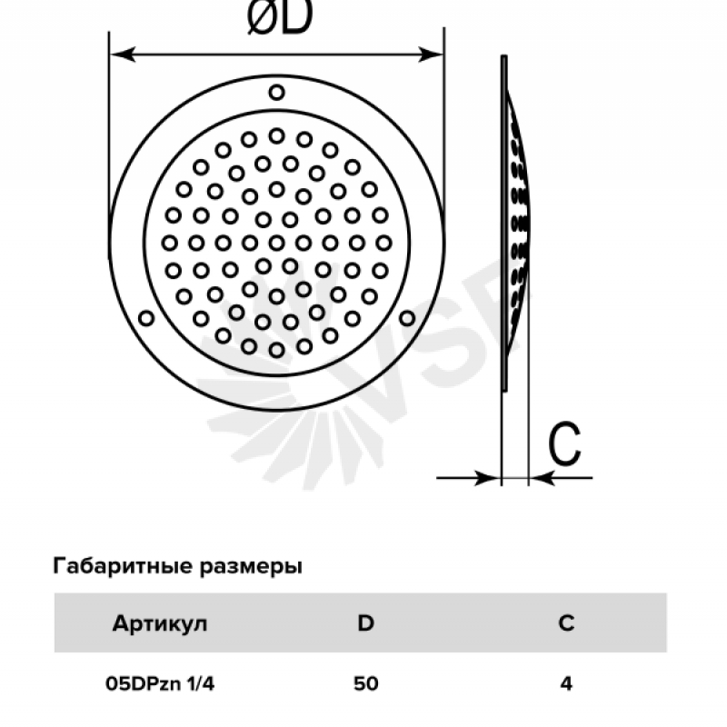 Решетка вентиляционная DP zn1/4, D50, окраш.оцинк.сталь, 4шт., ERA