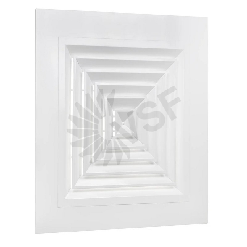 Решетка РС5/4-1 - потолочная стальная решетка без крепежных отверстий (для монтажа в подвесной потолок типа "Армстронг") с четырехсторонней раздачей настилающимися воздушными струями, создаваемыми блоком диффузоров. Данная решетка предназначена для притока или вытяжки воздуха системами вентиляции, кондиционирования и (ограниченно) воздушного отопления. Решетки монтируются в подвесной потолок типа «Армстронг» и аналогичные, в помещениях различного назначения.